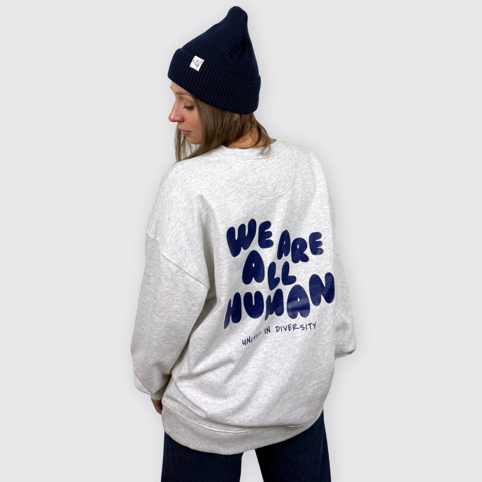 Oversized Sweatshirt "We are all Human" & BeeProud Fisherman Beanie